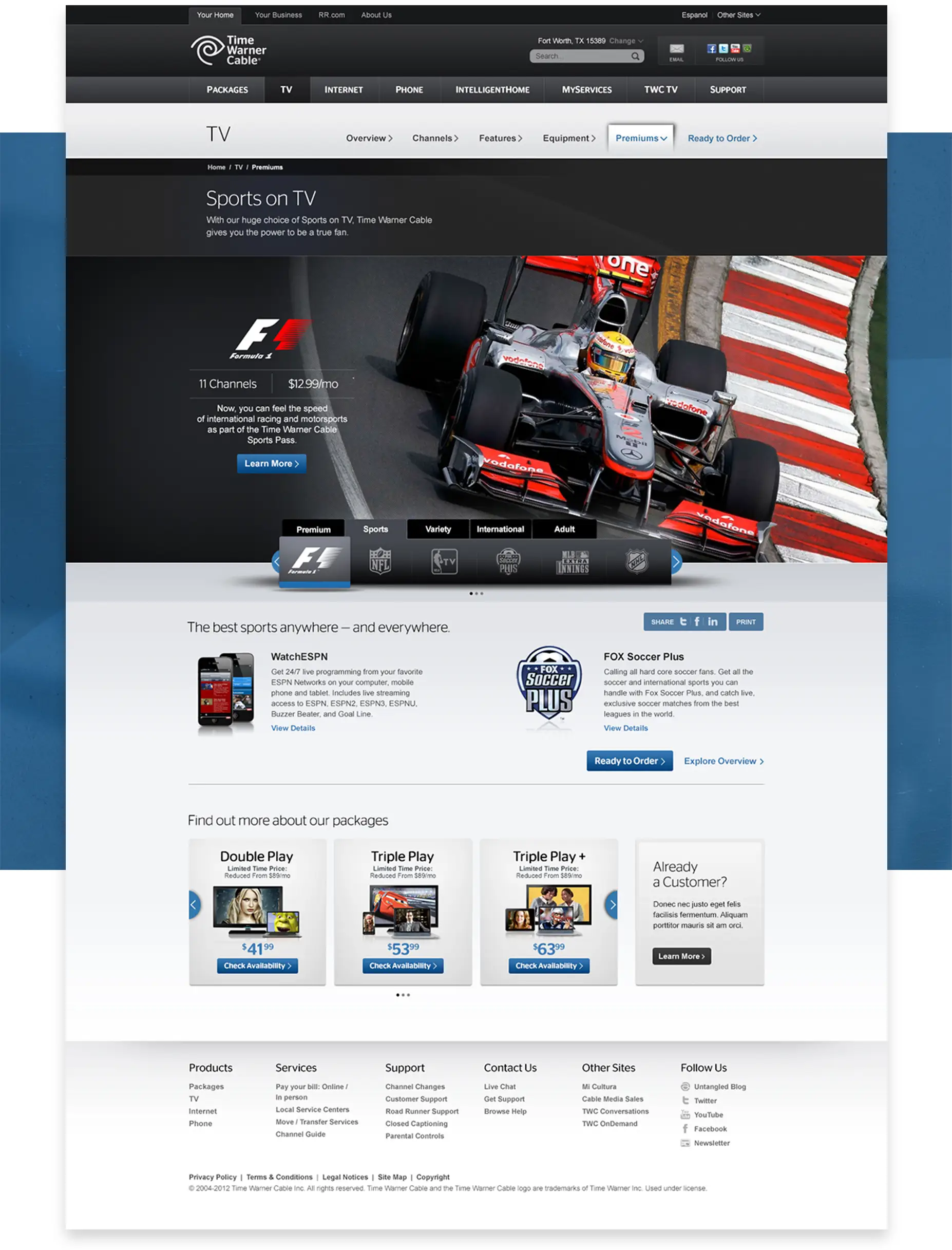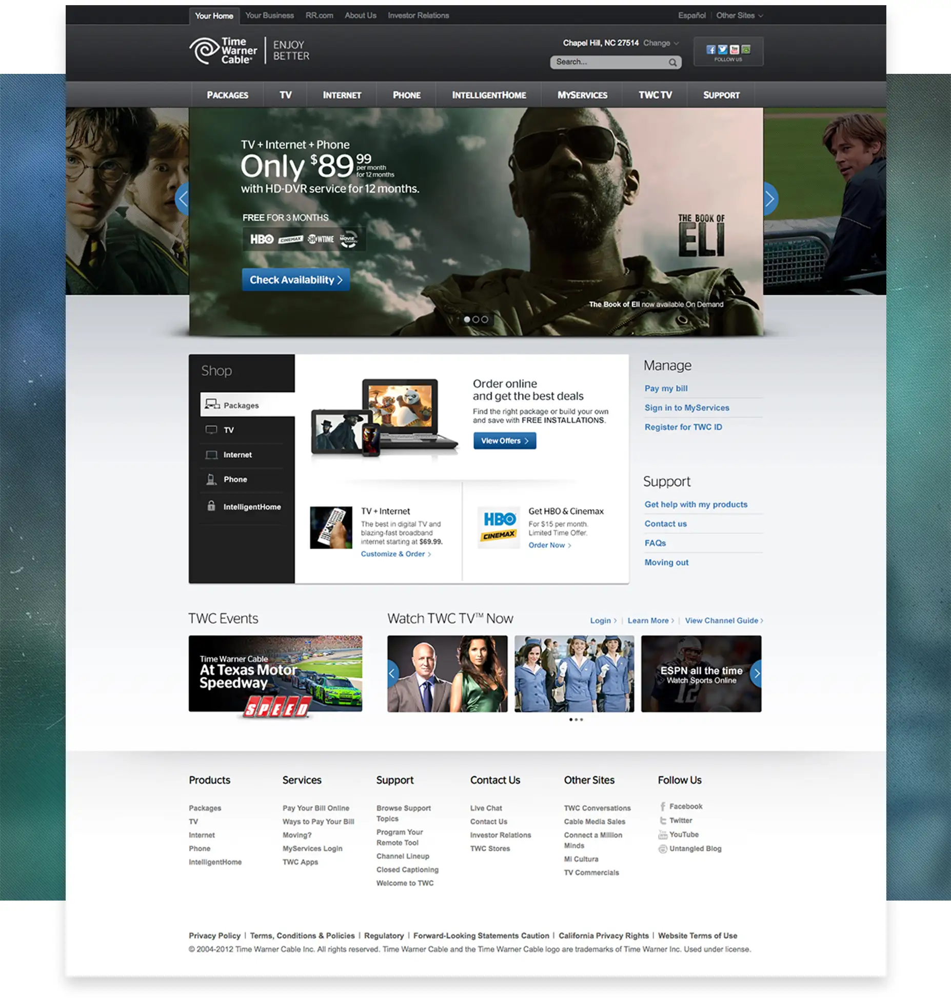 As one of the leading service providers in the United States, Time Warner Cable had an online experience that was outdated and cumbersome. To improve the experience, they engaged Siteworx to redesign their suite of properties. As part of the project, I took on the challenge of modernizing the residential and support areas of their platform. My role involved refreshing the visual design and optimizing the user experience to make it more intuitive and seamless for customers.
